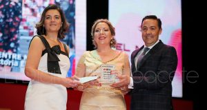 El premio “Entre Nosotras a la Acción Social” ha sido para Ayudom, recogido por su gerente María José Ruiz, quien destacaba que su empresa pretende ayudar a personas que lo necesitan, para que “puedan sentir el mejor de los cuidados en su entorno”, precisamente a ellos es a quien ha querido agradecer el galardón. Cabe destacar que Ayudom atiende a las personas dependientes en su propio domicilio.