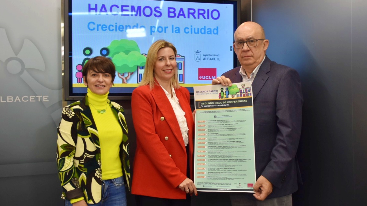 La concejala de Barrios y Pedanías, Ana Albaladejo, ha presentado hoy la segunda edición del programa de conferencias ‘Hacemos barrio’, una iniciativa ciudadana, promovida con el apoyo de Virgilio Cencerrado, a la que, en su primera edición se fueron sumando ponentes de gran nivel, y que nació en un barrio, en el Polígono San Antón.
