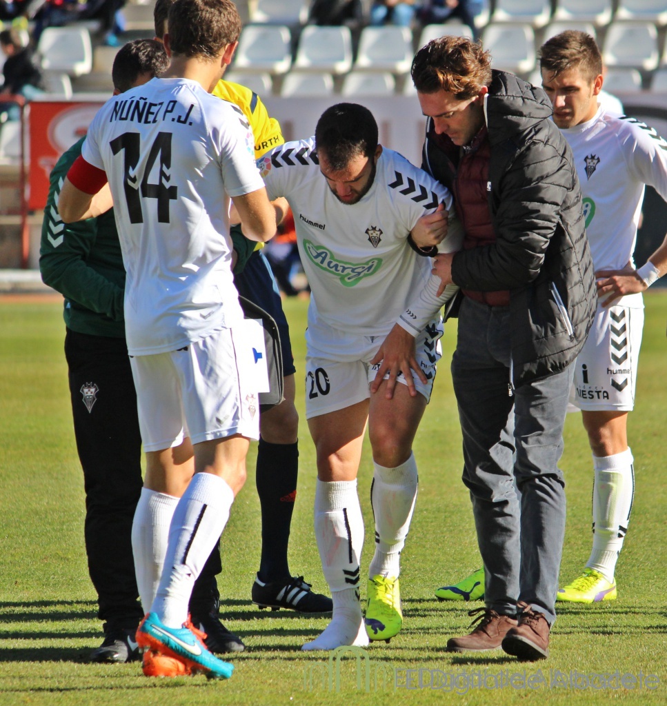 Luis César tuvo que variar muy pronto sus planes y cuando el crono señalaba el 23 de juego, Edu Ramos tuvo que retirarse del terreno de juego con molestias en una de sus rodillas y Mario Ortiz fue el encargado de saltar desde el banquillo para entrar en sustitución del jugador malagueño. El cambio fue de hombre por hombre y tras la entrada de Ortiz al verde, el esquema del Albacete Balompié continuó igual que antes de retirarse Edu Ramos.
