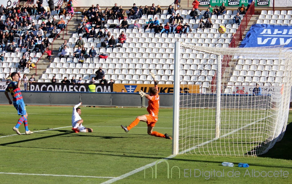 El tiempo corría en contra de los de Luis César y a pesar de ir por detrás en el marcador y estar jugando en su feudo, la reacción de los blancos no llegaba a producirse y después de treinta minutos de partido, el Albacete Balompié aún no había disparado entre los tres palos y no había llevado peligro alguno a la meta defendida por Moragón. Algo que dice muy poco de un equipo que se está jugando la vida y que tiene delante a un rival directísimo en la lucha por la permanencia en el fútbol profesional.