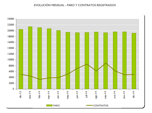 En el último año el paro ha bajado en la capital un 6,23% es decir 1.278 parados menos que en diciembre de 2013, destacando el descenso del desempleo en los sectores de Construcción, Industria y Servicios.