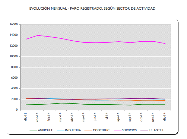 En lo que se refiere a los sectores de actividad, destacada la subida del paro en el dato interanual en el sector de la agricultura que ha subido un 12%, pero sin embargo, destaca el descenso del paro en otros sectores como, en la construcción un 16,13%, en el sector industria del 10,76% y en el sector servicios la caída ha sido del 5,95%.