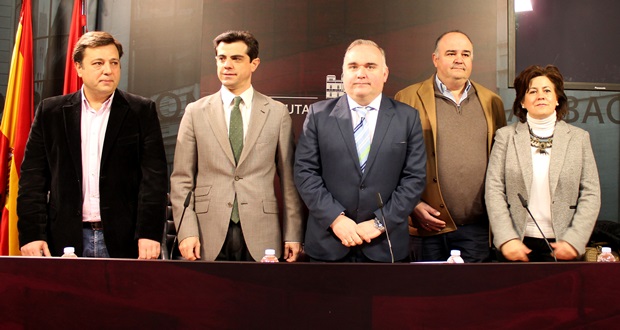 El vicepresidente de la Diputación, Constantino Berruga y la diputada provincial de Turismo, Mari Carmen Álvarez; el delegado de la Junta en Albacete, Javier Cuenca; el concejal del Ayuntamiento de la capital, Manuel Serrano; y el presidente de la Asociación de Hostelería y Turismo, Juan Sánchez, han presentado las actividades del Día de Albacete en Fitur 2015, que tendrá lugar el próximo día 29 de enero en Madrid, y que “llega más cargado que nunca”.