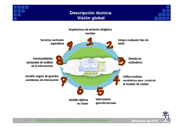 López Garrido, ha señalado que la mayor parte del presupuesto de la iniciativa se dedicará a la plataforma de integración que permitirá gestionar todos los datos del resto de componentes del proyecto y de todos los datos heterogéneos municipales y de otros que se pudieran integrar para poder ofrecer una solución de puesta a disposición de datos abiertos y Bigdata además de tomas de decisiones basados en conocimiento.