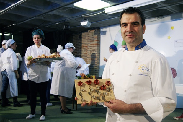 El acto finalizó con el obsequio a todos los asistentes, por parte de la Comunidad Europea de Cocineros Eurotoques, de una botella de aceite de oliva y un sobre de cacao en polvo, “para preparar la merienda de esta tarde”, comentó Quique Cerro; así como un diploma.