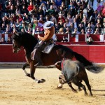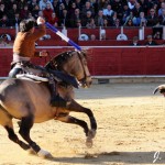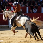 Abría cartel Diego Ventura con un novillo de Castillejo de Huerva al que le faltó emoción y entrega. Gran actitud del rejoneador, que no dudó en pisar terrenos cortos para tirar del novillo. Presentó a dos nuevos caballos de su cuadra, aunque los mejores momentos se vivieron a lomos de un veterano, ‘Remate’, en las banderillas cortas y con el certero rejón de muerte. Paseó dos orejas.