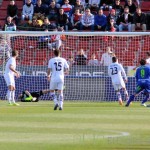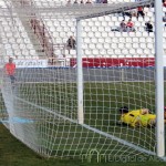 Cuando el 1 a 2 parecía estar más cerca que el 2 a 1, Moutinho controló un balón que casi bajó con nieve y conectó con un Rubén Cruz que giró 180 grados en un palmo de terreno para adentrarse dentro del área y caer derribado en falta por un zaguero blanquiazul. Figueroa Vázquez no lo dudó un ápice y señaló el punto fatídico para que de nuevo Rubén Cruz ejecutase el lanzamiento y el balón besase las mallas bercianas por segunda ocasión en la soleada tarde de este domingo uno de marzo. Corría el minuto setenta y uno de juego.