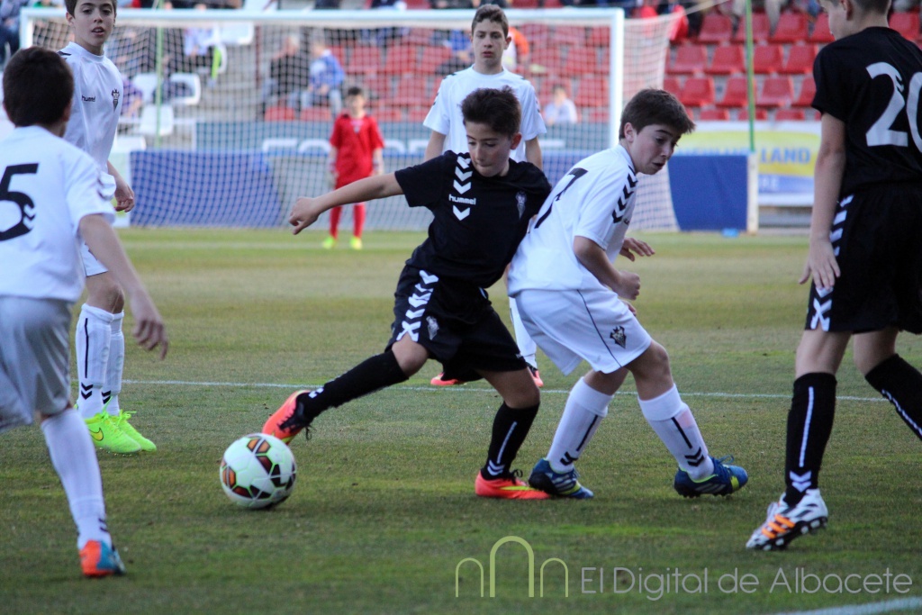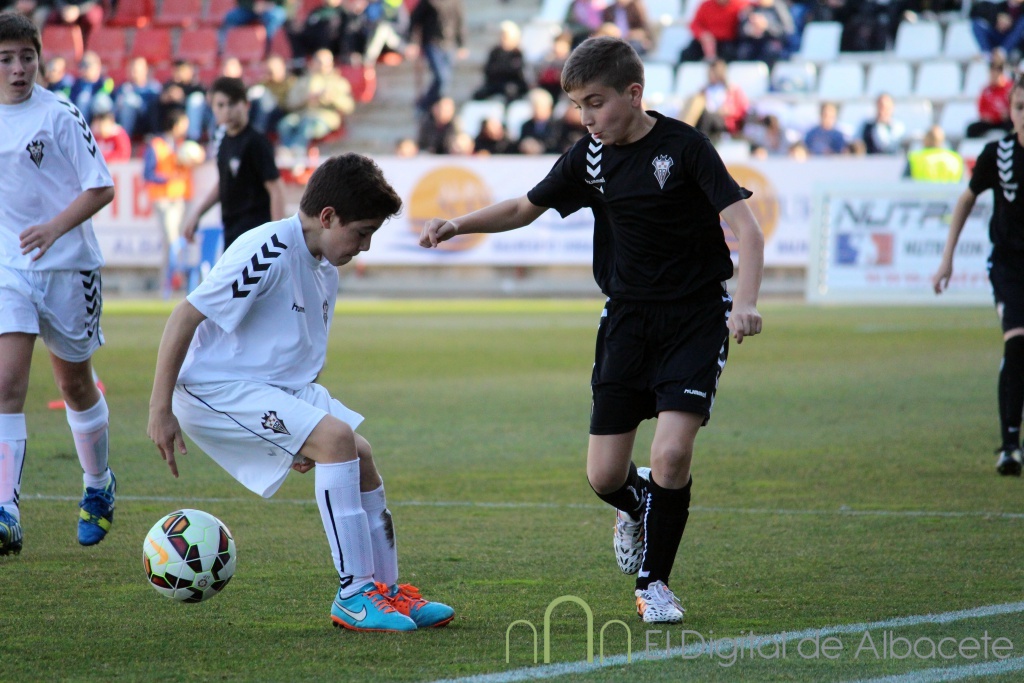 Con motivo de la celebración del “Partido de la Cantera del Alba” y en los prolegómenos del encuentro, los jugadores de las categorías inferiores del Albacete Balompié saludaron al público congregado en los graderíos del Carlos Belmonte. Del mismo modo, durante el descanso del encuentro se disputó un partido de exhibición con jugadores de la cantera albacetista.