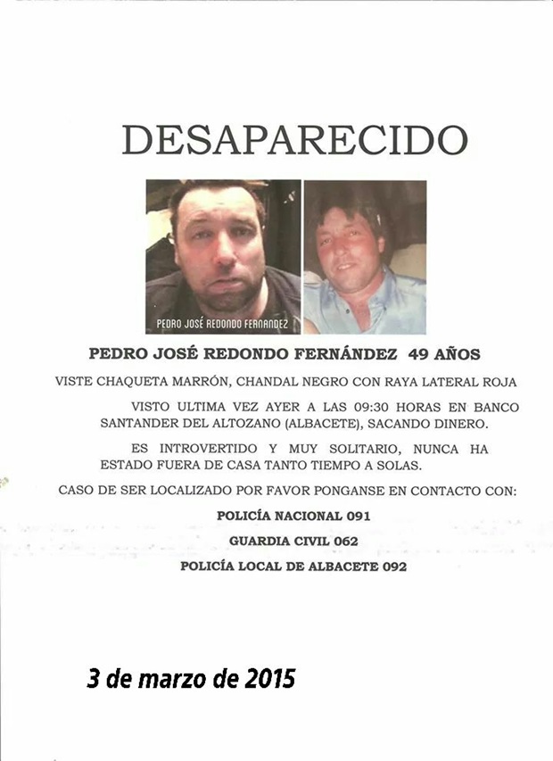 La familia comenzó a inquietarse cuando al medio día no había llegado a su casa. Pasadas 24 horas denunciaron la desaparición y ahora piden ayuda a todos los albaceteños por si tienen alguna información sobre el paradero de Pedro José Redondo.