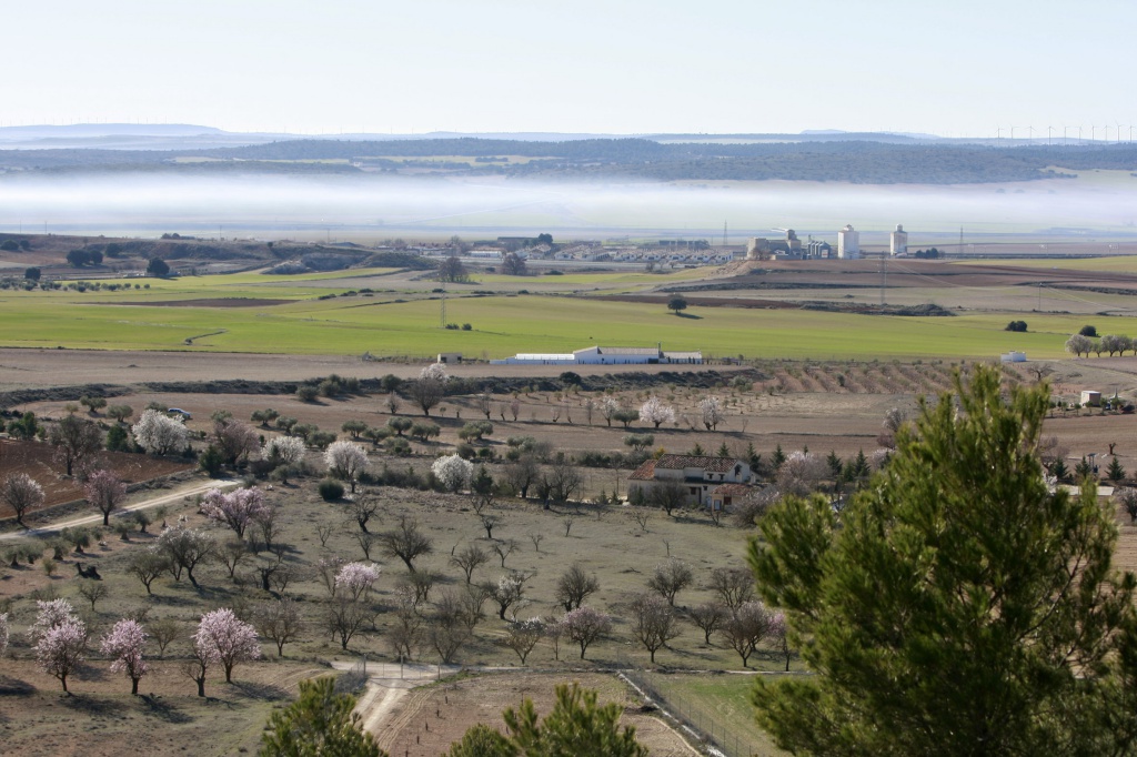 En primer lugar, nos dirigimos hacia el cerro de San Cristóbal, que es el cerro donde se ubican las grandes antenas que sirven de repetidor tanto a televisiones, radios como a las distintas empresas de telefonía. Comenzamos una subida de unos 300 metros durante los cuales pudimos ver el pueblo de Chinchilla, conforme cogíamos altura las vistas eran más espectaculares, entre pinos y por senda íbamos bordeando el cerro hasta entrarnos en la sierra, desde arriba se divisaba tanto Chinchilla como su estación, con una suave niebla, que junto al verde de los campos y las almendros en flor hacía un bonito paisaje.