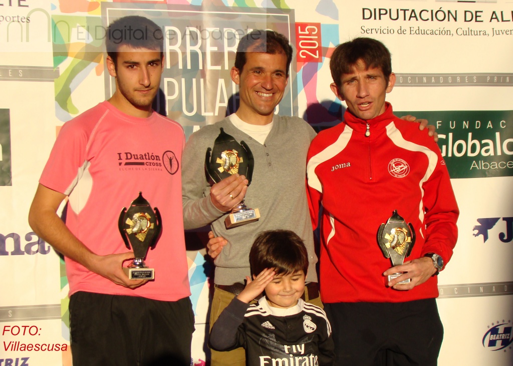 En la categoría masculina la prueba estuvo mucho más disputada. El joven Jesús Ángel Rodríguez intentó durante gran parte del recorrido aguantarle el ritmo al veterano José Ángel Cifuentes, pero la potencia del ex futbolista fue el principal aval para llegar a meta con una diferencia de 29 segundos. Por detrás de estos fondistas del Club de Atletismo Albacete-Diputación llegaron otros tres asiduos en podium como Francisco Lázaro Sesa, Pedro Amores y José Agustín Valiente.