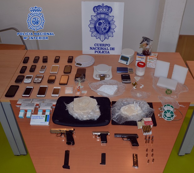 La Policía Nacional ha desarticulado una organización dedicada al tráfico de drogas. En esta operación han sido detenidas 15 personas en Albacete y Valencia. Se han intervenido 1.500 gramos de cocaína, tres armas de fuego, vehículos y diverso material para adulterar, elaborar, dosificar, y distribuir la droga.