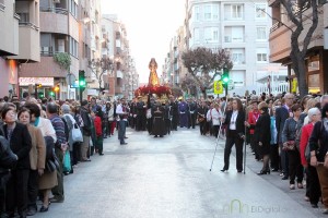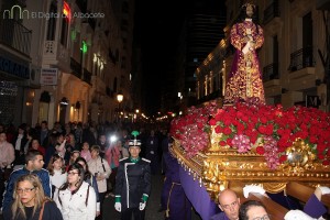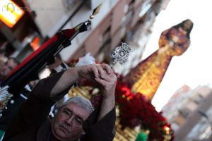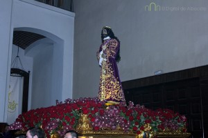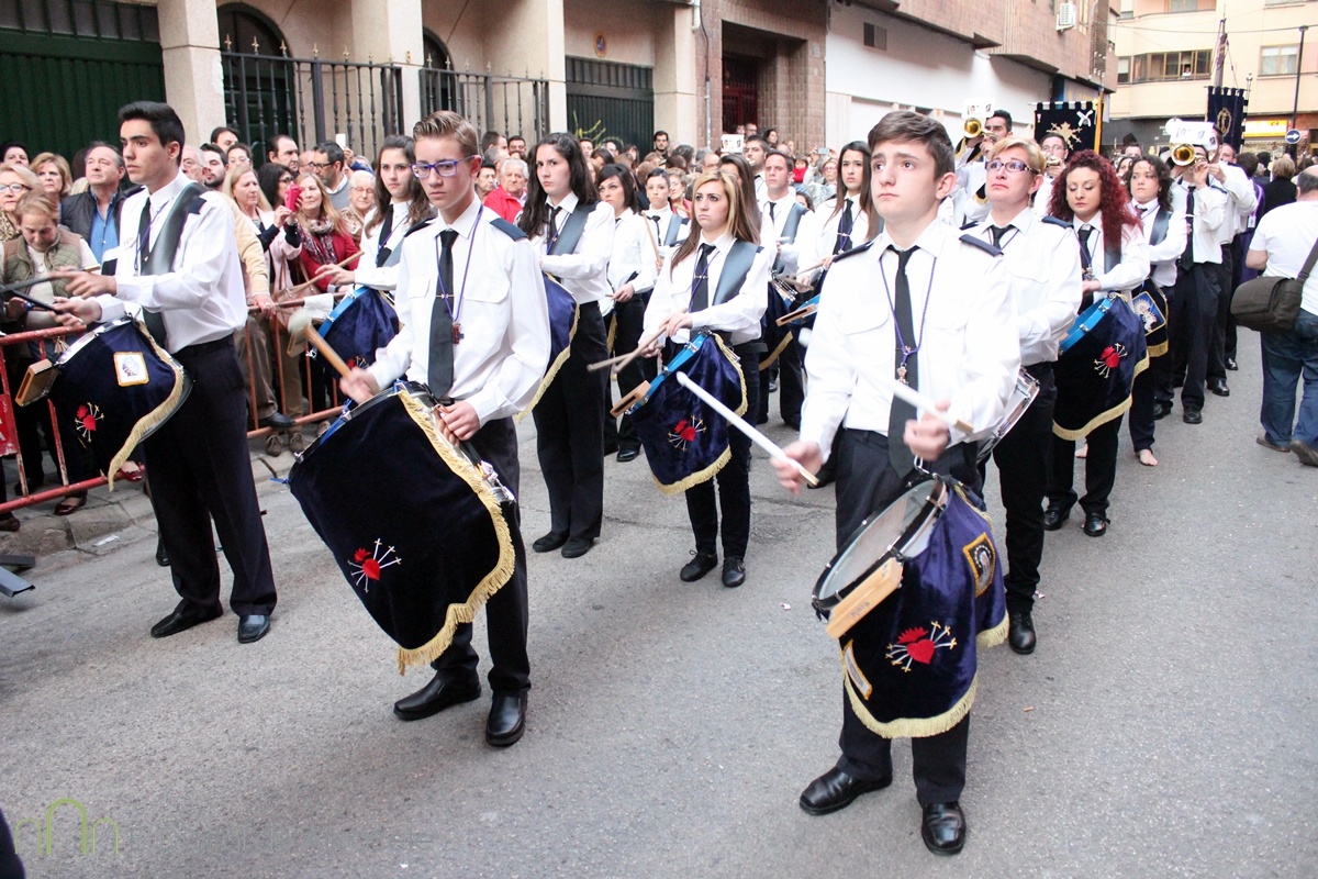 Este paso, el único de la ciudad que luce pelo natural, ha ido acompañado por la banda de cornetas y tambores de la cofradía ‘Nuestra Señora de los Dolores’.