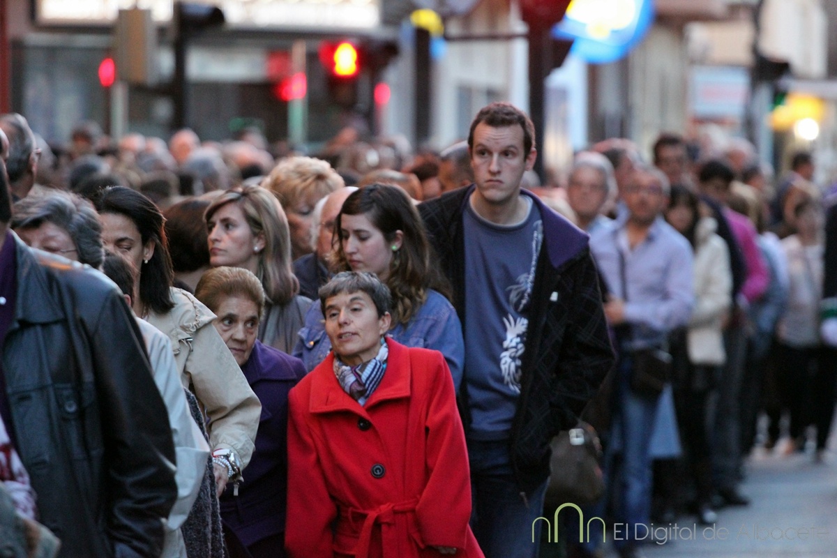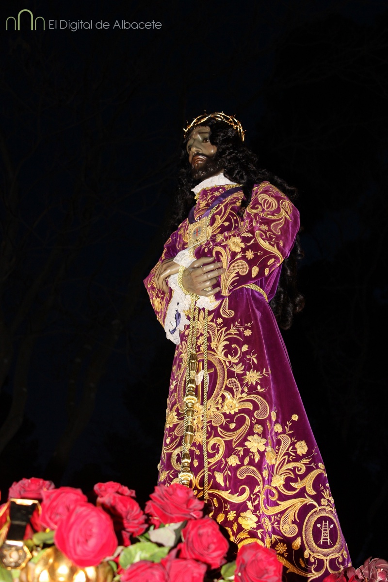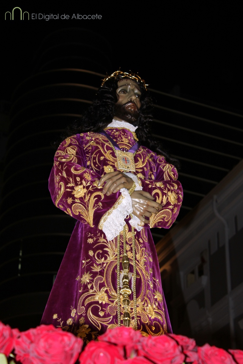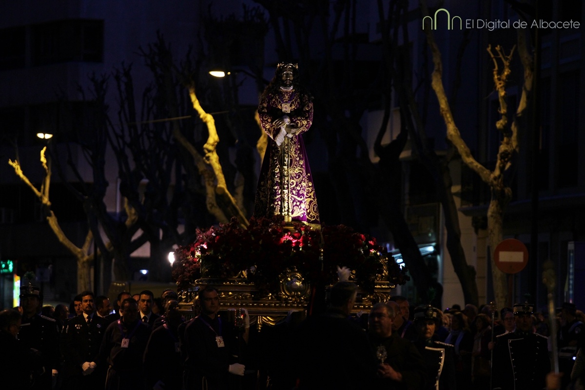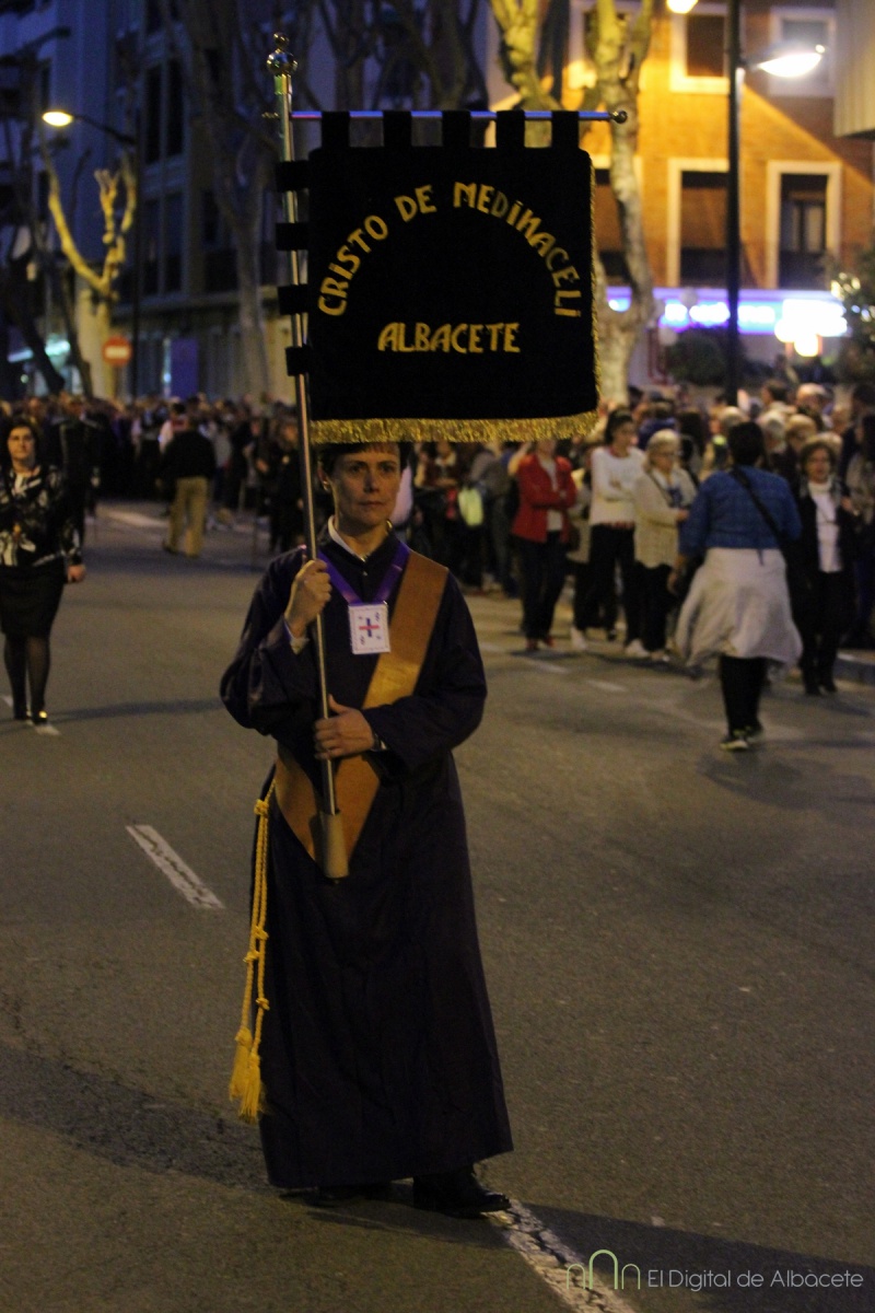 A las 20:00 se ha celebrado este Jueves Santo una de las procesiones más esperadas, cuando el Cristo de Medinaceli ha cruzado las calles de Albacete. Es uno de los Santos con más devotos en la ciudad. De hecho los habituales nazarenos que acompañan a los pasos hoy no eran cofrades, sino fieles albaceteños vestidos de calle, que han desfilado.