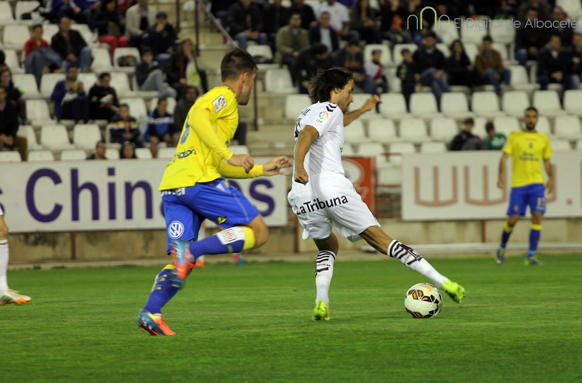 Rubén Cruz pudo inaugurar el marcador en el minuto trece de juego tras rematar con la testa un buen centro de Keko desde la derecha, pero desafortunadamente para los intereses del Albacete Balompié el remate del utrerano no encontró portería y terminó saliendo a escasos centímetros de la portería defendida por el ex del Alba y hoy guardameta de la UD Las Palmas, Casto.