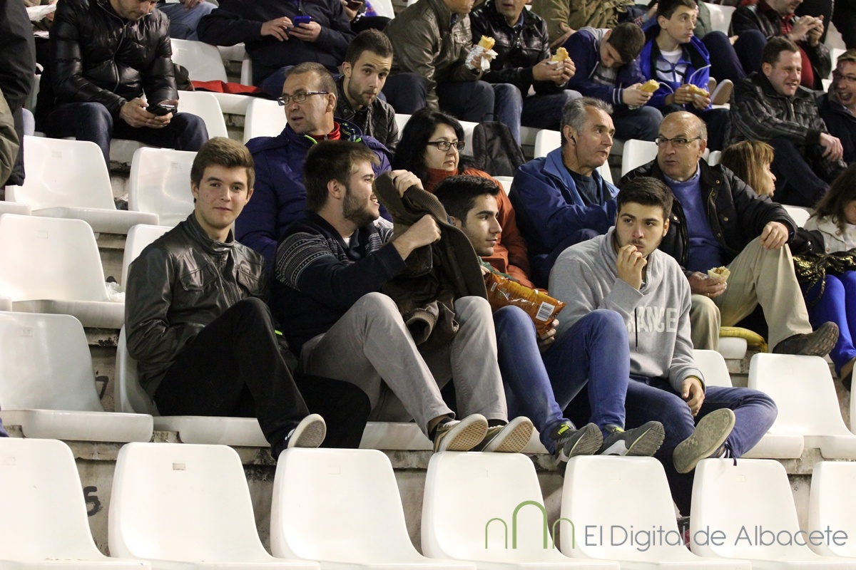 Conforme pasaban los minutos, el Alba se iba sintiendo más y más cómodo sobre el cuidado césped del Carlos Belmonte y para nada se notaba cuando se llevaban veinte minutos de juego disputados, quien era el que había arrancado la jornada ocupando la tercera posición de la tabla y quien, el que lo había hecho seis puntos por encima de los puestos de descenso. Diego Benito y Mario Ortiz tocaban y tocaban en la sala de máquinas mientras Samu y Keko, percutían como estiletes por sus bandas buscando las espaldas de un rival que aunque no estaba sufriendo en exceso en lo que a ocasiones claras de gol se refiere, se estaba encontrando un partido en el que no se sentía para nada cómodo sin el esférico en su poder.
