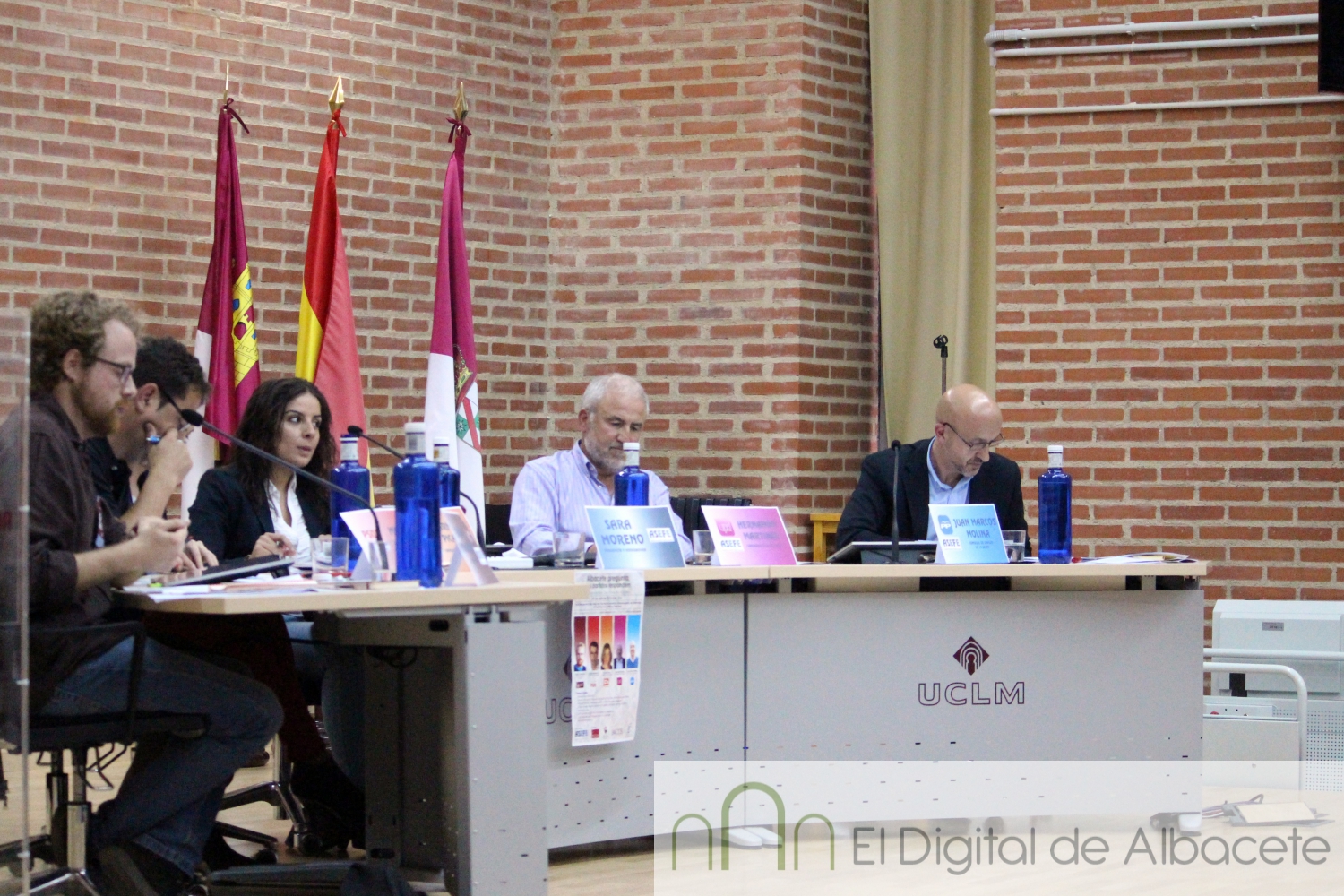 Este viernes se ha celebrado en el Aula Magna de la Facultad de Económicas el primer debate electoral de cara a los comicios municipales en Albacete, organizado por ASEFE. En él han participado representantes de diferentes partidos políticos. El PP ha estado representado por Juan Marcos Molina, Belinchón por parte del PSOE,, en el caso de Ciudadanos la participante ha sido su candidata, Carmen Picazo, por Ganemos ha sido el número dos de la lista, Álvaro Peñarrubia, y el quinto representante ha sido el cabeza de lista de UPyD, Hernando Martínez.