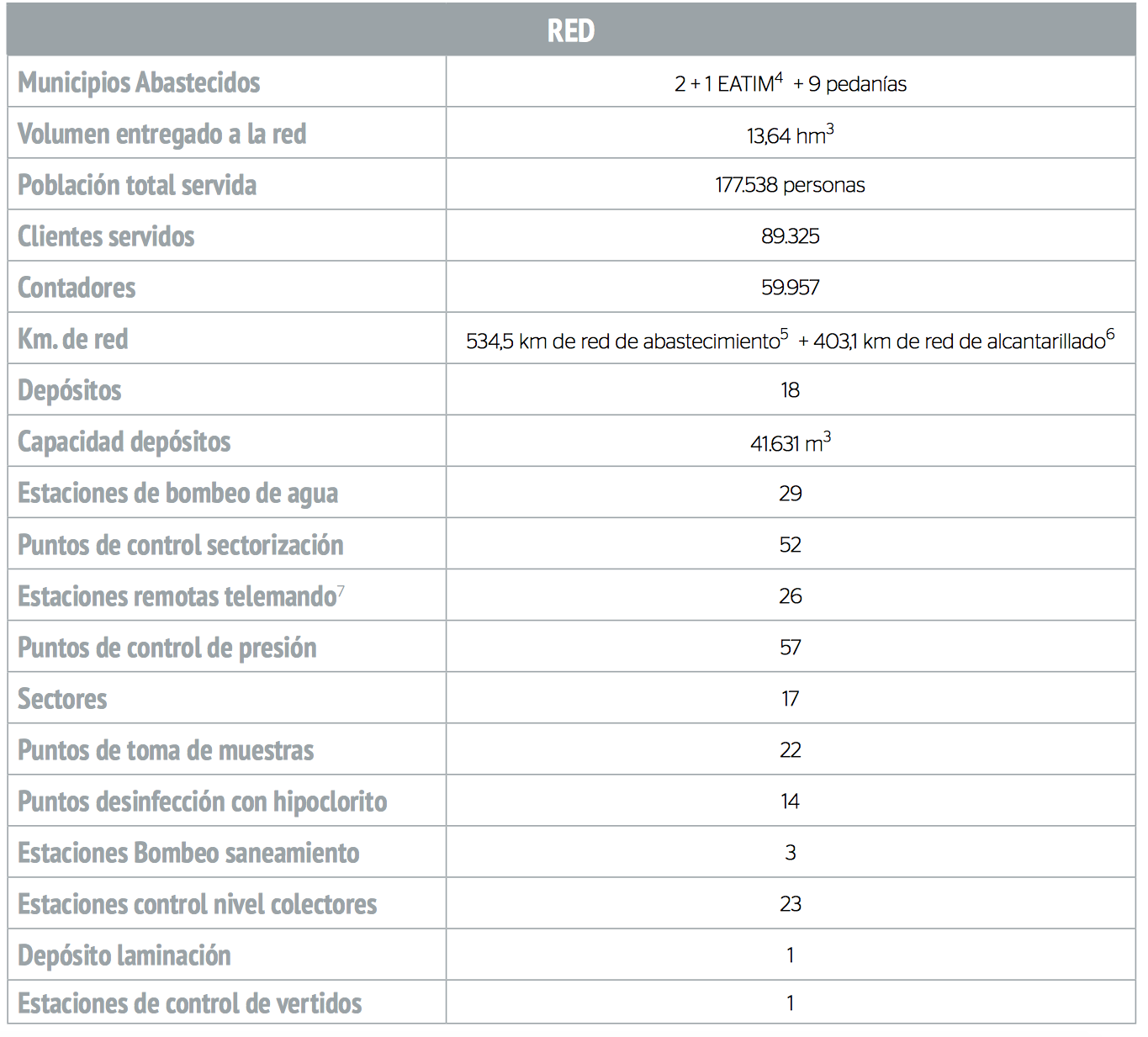 Por otro lado, la empresa mixta ha servido agua a una población de 177.538 personas gracias a una red de abastecimiento de 534 kilómetros, 18 depósitos, 29 estaciones de bombeo, y más de 403 kilómetros de red de alcantarillado.