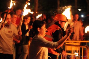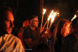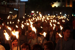 Pasadas las 10:00 de la noche los concejales de Albacete han comenzado el reparto de antorchas, que miles de albaceteños han recorrido para poder llegar hasta la hoguera con ellas encendidas. En esta noche de rituales el gran protagonista es el fuego, según cuentan las leyendas quema los malos augurios y atrae la buena suerte.