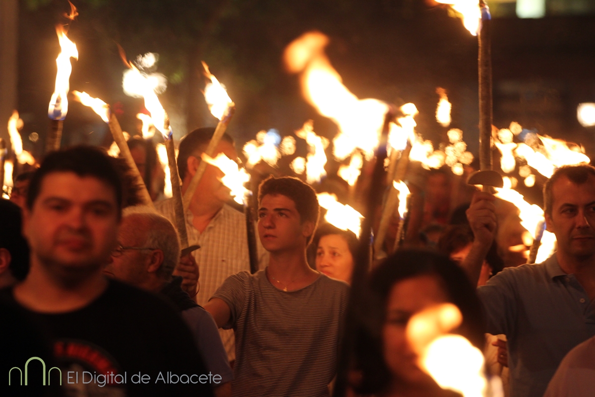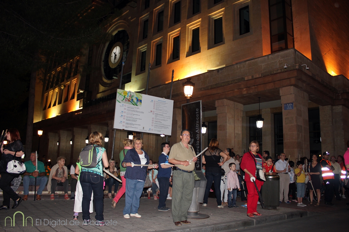 Albacete se ha llenado de luz cerca de la media noche, y no de una luz cualquiera, sino las de las 5.000 antorchas que ha repartido el Ayuntamiento de Albacete para celebrar la noche más corta pero más mágica del año.