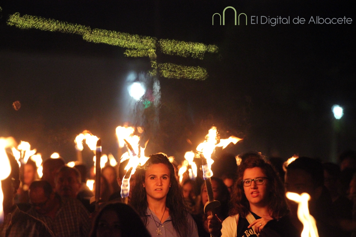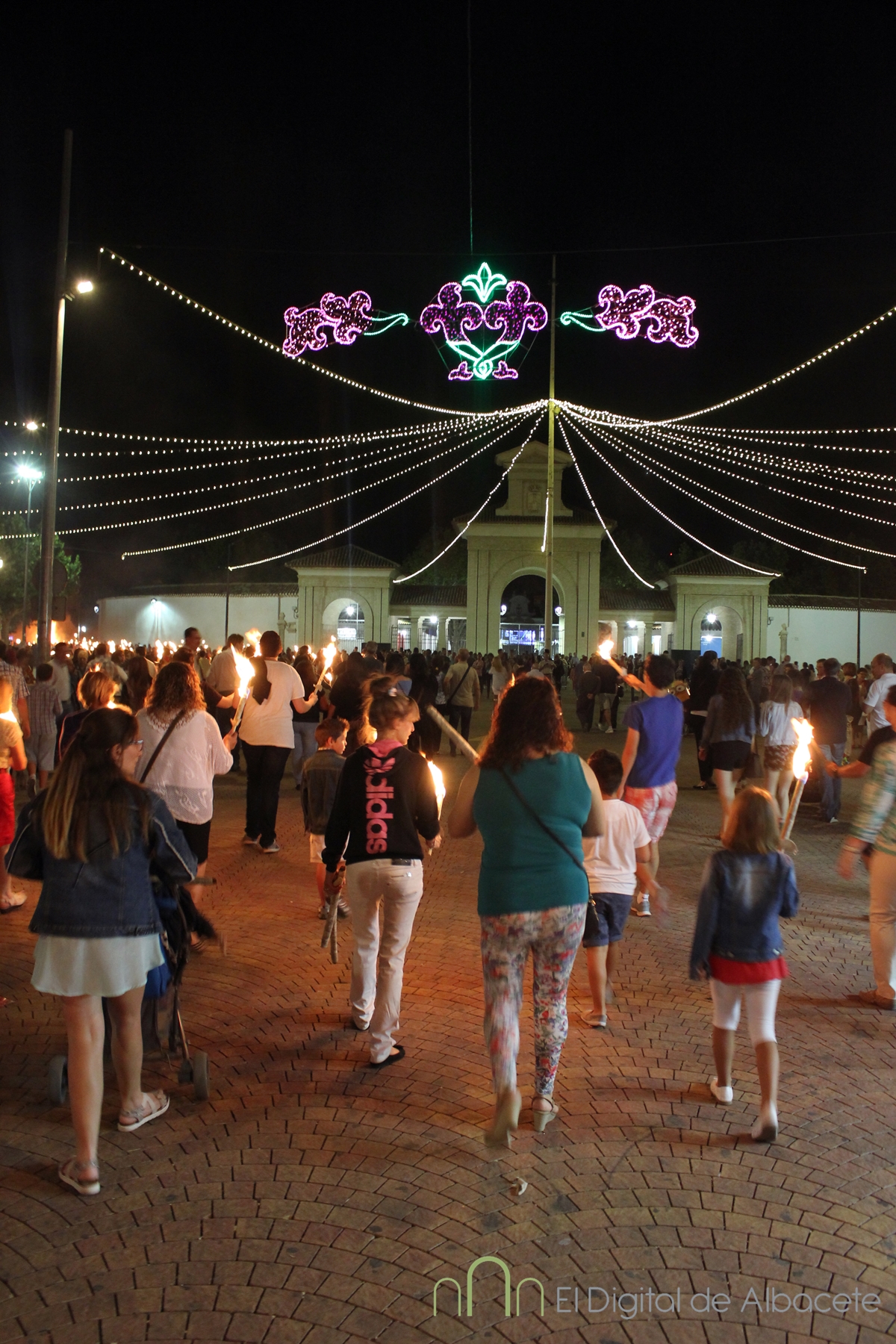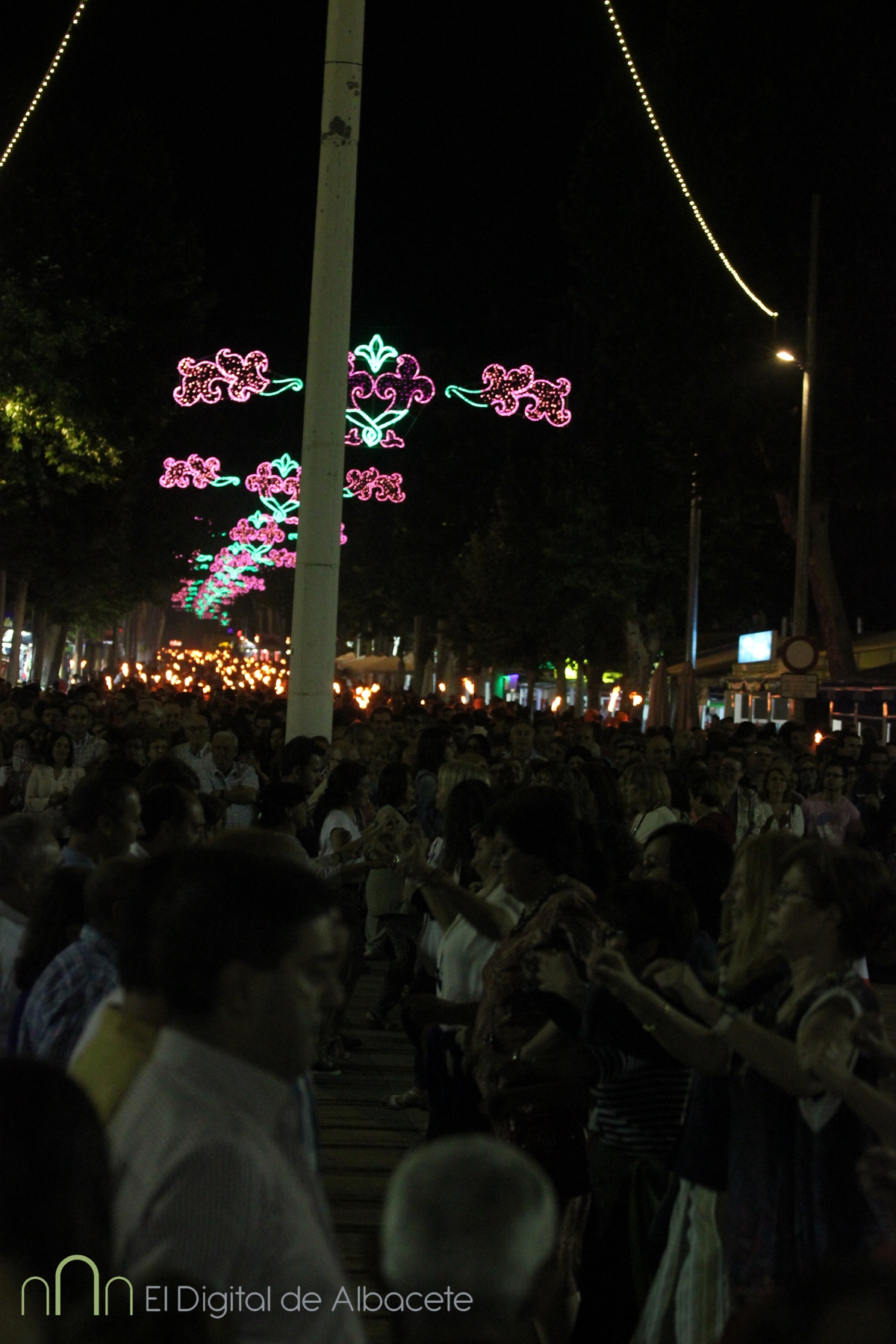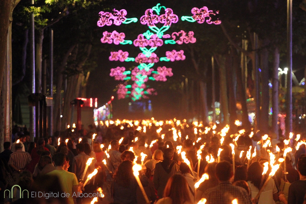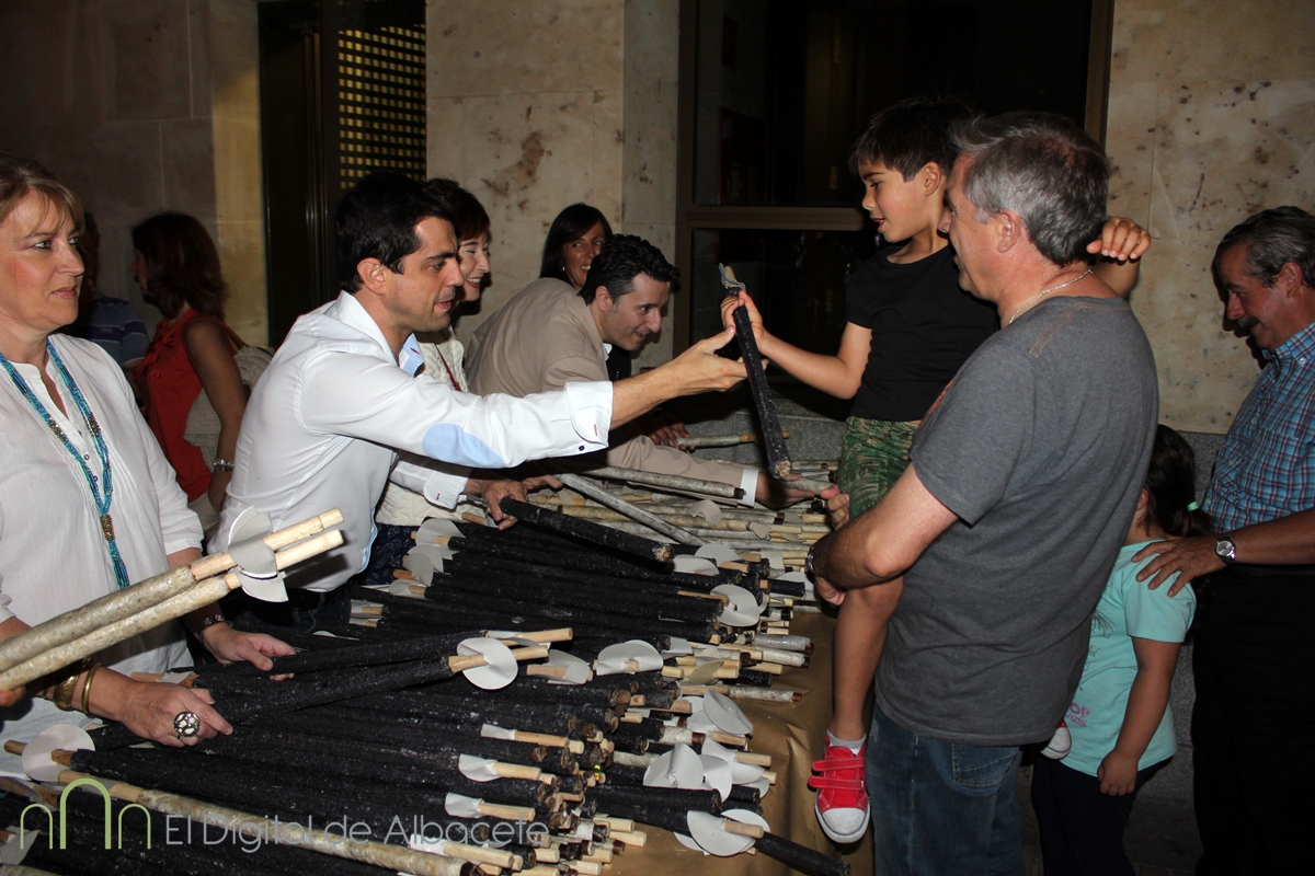 Pasadas las 10:00 de la noche los concejales de Albacete han comenzado el reparto de antorchas, que miles de albaceteños han recorrido para poder llegar hasta la hoguera con ellas encendidas. En esta noche de rituales el gran protagonista es el fuego, según cuentan las leyendas quema los malos augurios y atrae la buena suerte.