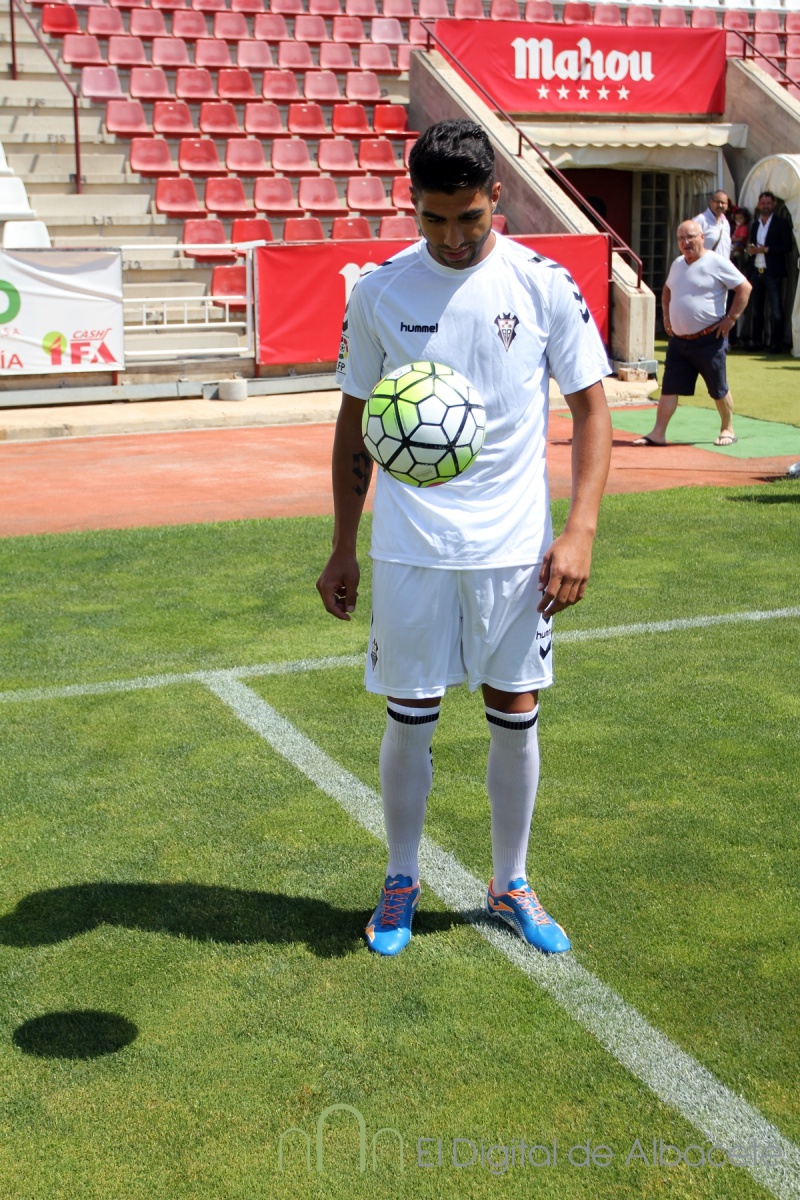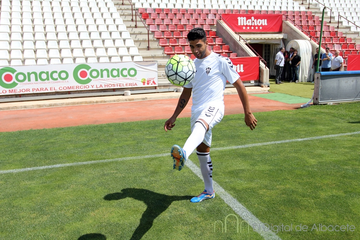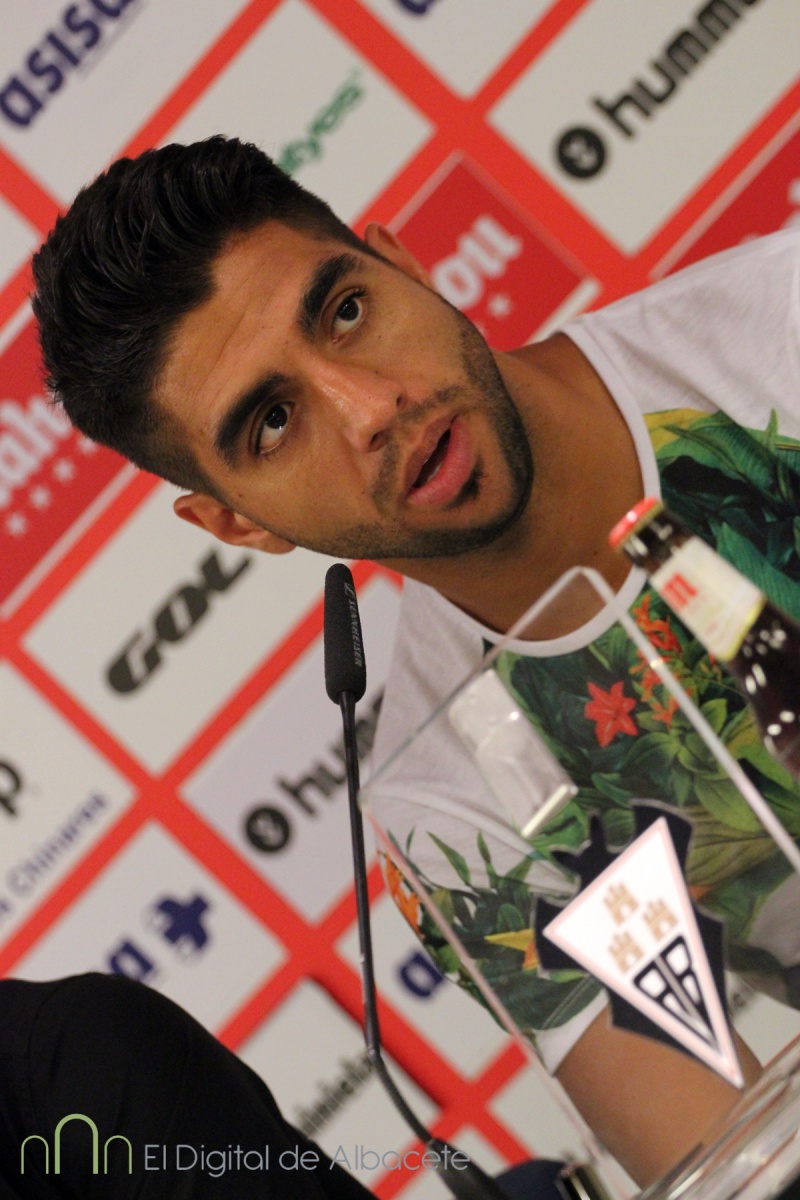 El nuevo delantero del Albacete Balompié ha sido presentado hace unos instantes en el Carlos Belmonte y se ha mostrado tremendamente ilusionado con el reto que desde hoy comienza. El hispano – hondureño no se marca un número de goles como objetivo pero sí espera superar su cifra del año pasado en segunda división B.
