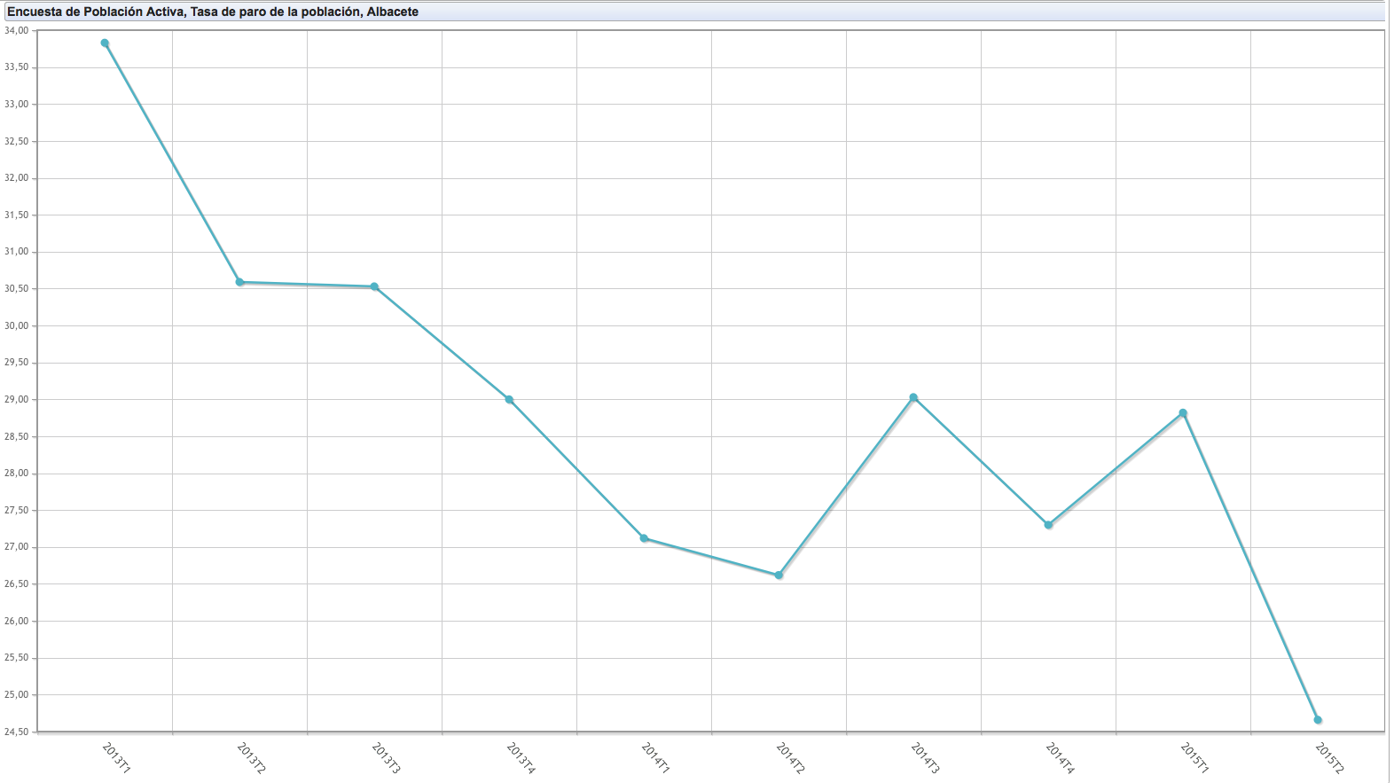 Este descenso supone que el número de parados vuelva a situarse en la provincia en niveles de la primera mitad del año 2011, dejando atrás las cifras de la parte más dura de la crisis, que se registraron en el primer trimestre de 2013 cuando la cifra de parados en la provincia de Albacete según la EPA era de 64.500 personas, 17.500 menos que en la actualidad. La tasa de paro por aquellas fechas (1T 2013) era del 33,83%