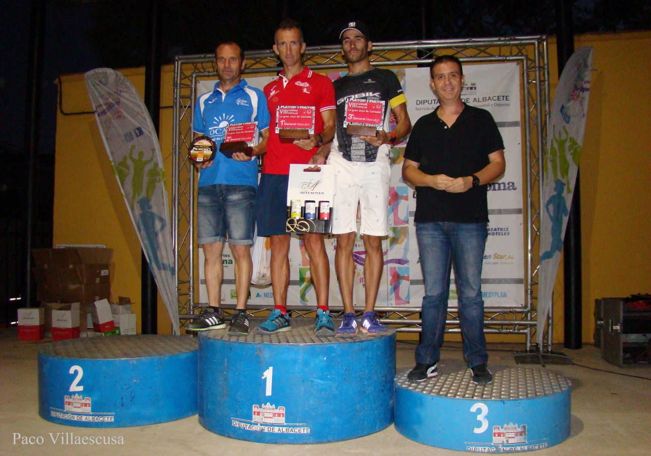En categoría masculina la prueba estuvo más disputada. En la primera vuelta, un grupo formado por Juan Carlos Hernández (Independiente), Eugenio Oliver (Pozo Cañada), Abelardo Martínez (Albacete-Diputación), Fran Sánchez (Artesones de Cenizate), Jesús Muñoz (Hoya Gonzalo-Caredent), Francisco López (Cárnicas Serrano), Lorenzo Martínez (Munera) y Paco Núñez (Albacete-Diputación) llegaban a la alfombra de cronometraje en el mismo tiempo.