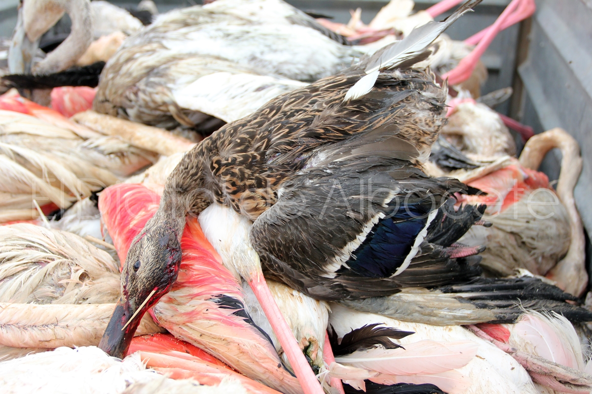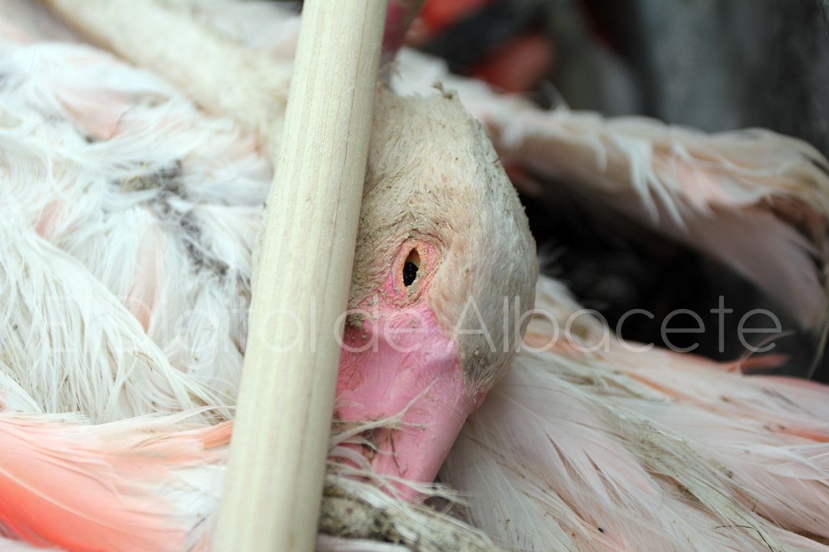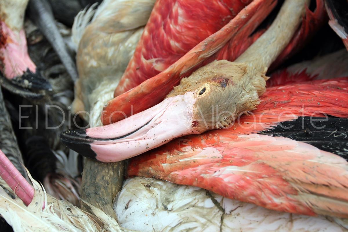 Tal y como les venimos informando desde El Digital de Albacete la fuerte granizada caída este lunes por la tarde en la provincia de Albacete ha tenido devastadoras consecuencias para al menos 200 flamencos de la Laguna de Pétrola, que vieron como las piedras de hielo terminan con su vida. El paisaje que nos encontramos ahí es desolador. Animales muertos con el cráneo perforado y varios heridos de gravedad son la imagen negra de un lugar que hasta hace unas horas era un auténtico oasis de fauna en la provincia de Albacete.