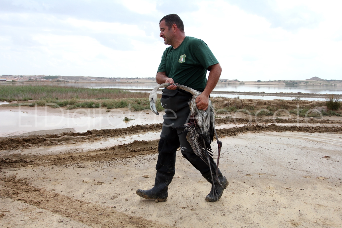 Por otro lado, Juan Picazo Talavera, biólogo que habitualmente realiza trabajos en la Laguna de Pétrola ha lamentado que el domingo pasado contabilizó 330 pollos de flamenco y a día de hoy, y según sus cálculos, esa población se ha visto reducida en un 80%. «El granizo de ayer ha producido una masacre de la colonia de Flamenco», señala.