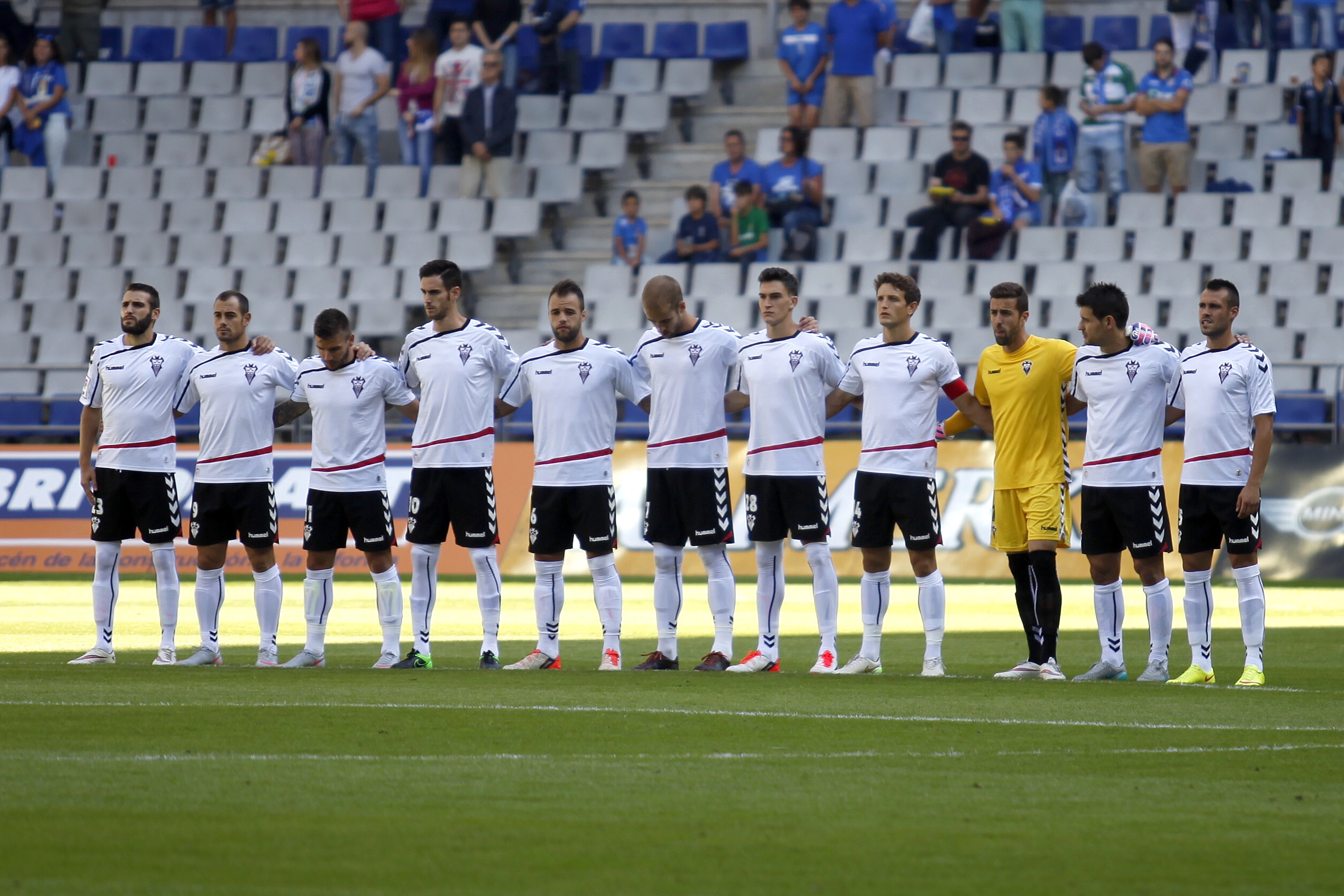 Los blancos se presentaron en el coliseo oviedista con dos cambios en el once y en principio, solo César Díaz y Adri Gómez, serían las novedades en el once de Luis César para medirse a los azulones. Sin embargo, unos problemas musculares durante el calentamiento de Juan Carlos, dieron la titularidad a Dorronsoro en sustitución del que había sido el mejor del Albacete Balompié en los dos partidos de liga disputados hasta que comenzase el partido de hoy y a buen seguro que se notó la presencia de uno y la ausencia de otro en el choque del Tartiere.
