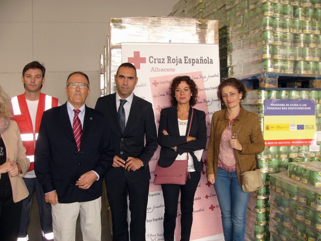 Con motivo de la 2ª Fase del Plan de Ayuda alimentaria para los más necesitados del Ministerio de Agricultura, Alimentación y Medio Ambiente, el subdelegado del Gobierno en Albacete, Federico Pozuelo, ha visitado las instalaciones de Cruz Roja de la provincia, situadas en el Polígono Campollano, acompañado del secretario provincial de Cruz Roja, Germán Nielva, de la coordinadora, Eva Callejas y de Gloria Salinas, directora de intervención social, para conocer el desarrollo de la distribución de los alimentos del Plan 2015 de ayuda alimentaria a las personas más desfavorecidas. Con posterioridad el subdelegado se ha dirigido al Banco de Alimentos, instalado en el Polígono Camporroso, junto con el presidente, José Antonio García, donde también ha podido comprobar los alimentos recibidos desde el FEGA para su reparto entre los más desfavorecidos.
