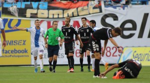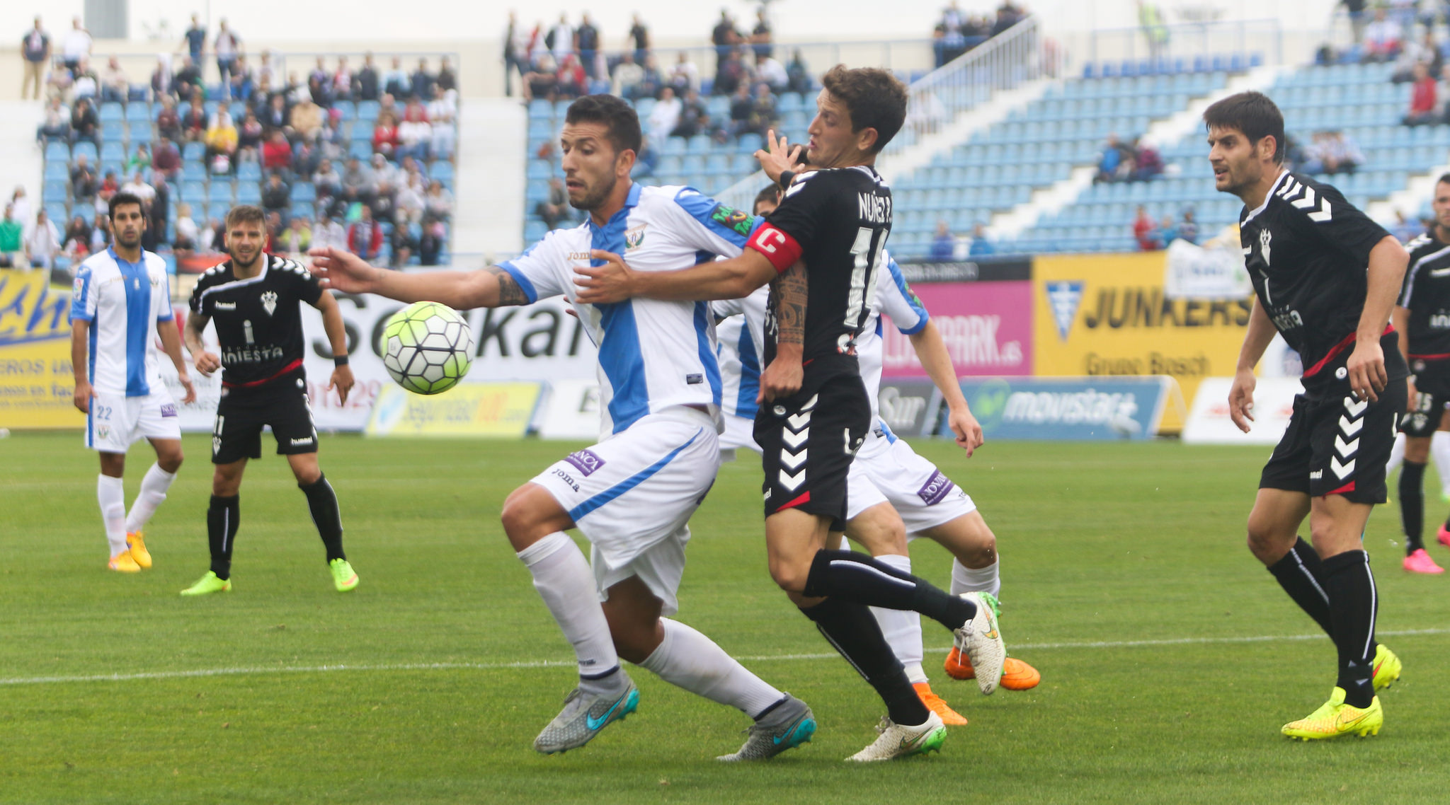 Conforme pasaban los minutos, el Albacete Balompié se fue diluyendo como un azucarillo en un vaso de agua y la banda derecha de los blancos, se estaba convirtiendo en una auténtica autovía por la que los jugadores del CD Leganés percutían sin cesar buscando con ahínco el empate. Luis César, intentó paliar esa situación, cambiando a Santi Jara de banda y colocando ahí a César Díaz. El de Almansa no tuvo en esta primera mitad de partido su día y minutos después, veía la cartulina amarilla; antes la vio Miguel Núñez y supondrá la sanción de un partido para el de Siruela al ser la quinta de la temporada.