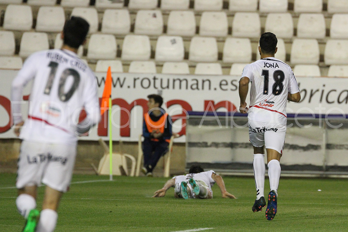 Y cuando peor estaban los albaceteños, al filo del descanso, llegó el empate a través de Paredes, después de un centro de Antoñito, tras el cual hizo un control orientado en la frontal y lanzó un derechazo, a bote pronto, que batió a Dani Hernández (m46).
