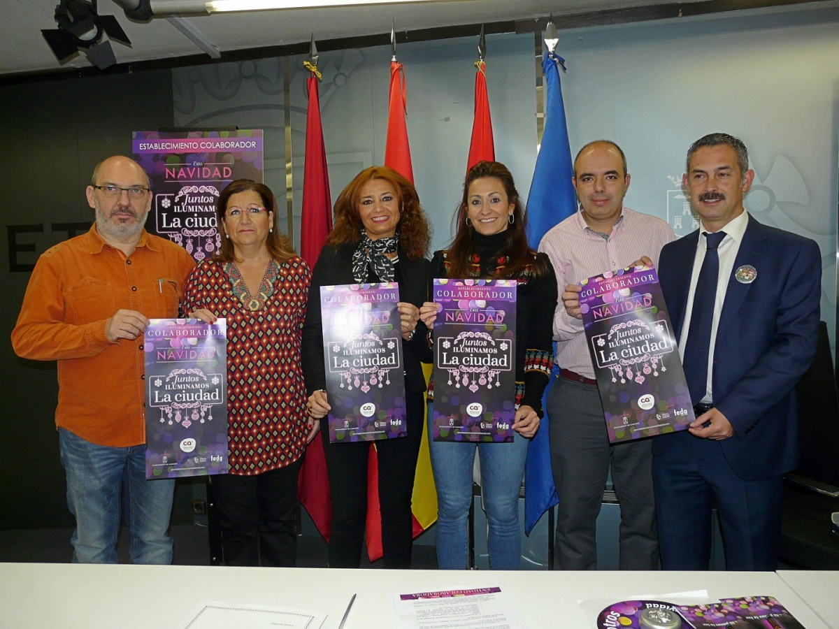 La concejal del equipo de gobierno Rosa Gonzalez de la Aleja, junto al Secretario de Federación de Comercio Julián Sevilla, el Director de Relaciones Institucionales de una superficie comercial, Víctor Hernández, y en representación de otro centro comercial, Inmaculada Casaponsa han presentado la iluminación navideña en Albacete para esta próxima navidad.