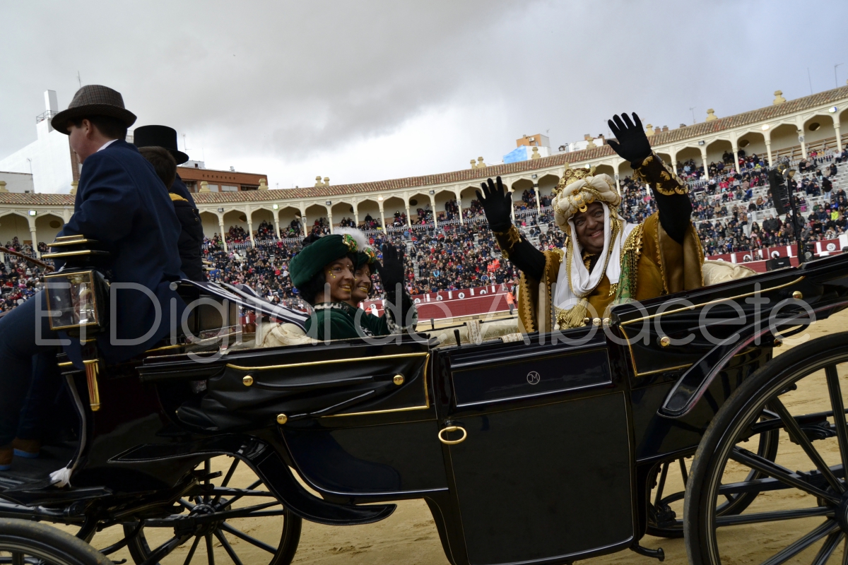 Los Reyes Magos ya han llegado a la ciudad de Albacete. La Plaza de Toros estaba llena de niños a los que acompañaban sus padres o sus familiares para recibir a los Reyes Magos y sus pajes. Caras de sorpresa, pero sobre todo de ilusión, de los más pequeños que con gran alegría han saludado a sus majestades, a los que los niños esperan durante toda la Navidad, ya que mañana cuando se levanten encontraran los regalos que les han dejado tras la visita a sus casas.