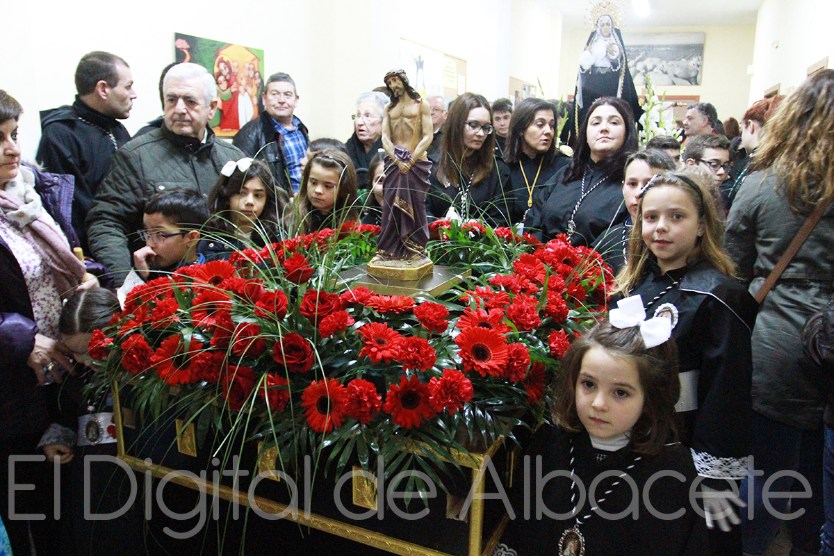 Los más pequeños de Albacete no han podido desfilar este Lunes Santo, día de la Semana Santa en el que se convierten en los principales protagonistas con la procesión ‘Dejad que los niños se acerquen a mí’. El recorrido que iba a seguir esta procesión era desde Nuestra Señora de las Angustias, bajando por la calle Ángel, Avenida de España, Muñoz Seca, Cristóbal Lozano, Doctor Beltrán Mateos, Plaza de Santa Teresa de Jesús Jornet hasta la Residencia de ancianos “San Antón”. Además, este 2016 se había adelantado media hora el inicio, a las 17:30 horas, para que la luz solar acompañará a los niños, ya que este año coincide con el horario de invierno.