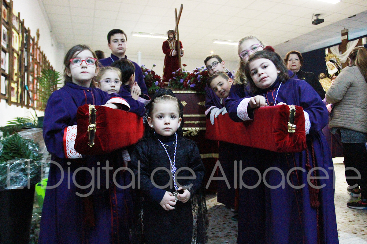 Todos ellos han demostrado que la Semana Santa de Albacete tiene futuro, ya que se han podido ver pequeños nazarenos, costaleros, músicos y hasta manolas. Ellos mismos, con edades comprendidas entre los 4 y 12 años, iban a ser los encargados de llevar las réplicas en miniatura de las imágenes y formar las filas.