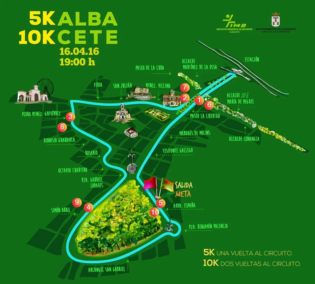 El circuito se iniciará en la Avenida de España, girando por la calle Tesifonte Gallego y Altozano hasta la Avenida de la Estación. Desde allí se volverá a Altozano, tomando dirección hacia el Molino de la Feria, girando por la calle Pedro Martínez Gutiérrez, continuando por la calle Dionisio Guardiola hasta la calle del Rosario y recorriendo la calle Octavio Cuartero.