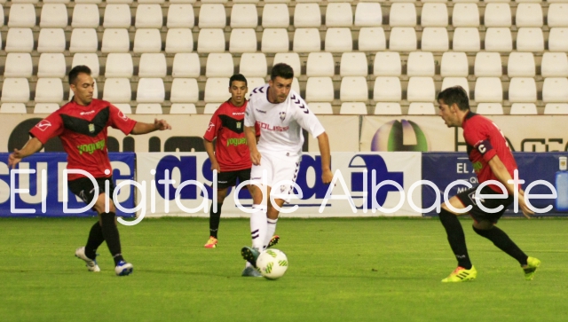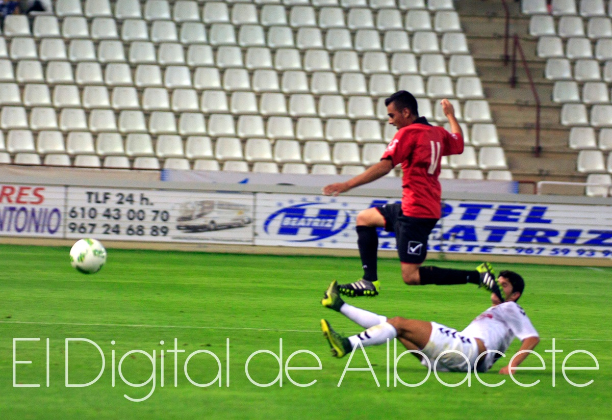 Alfon entró a falta de quince minutos para el final y el joven atacante del Albacete Balompié no tardó ni dos minutos en generar una clarísima ocasión de gol que tras driblar en un palmo de terreno a su par con una tranquilidad pasmosa, no traspasó la línea de gol porque impactó en la cepa del poste derecho de la meta conquense cuando Hugo yacía en el suelo sin posibilidad de llegar al balón.