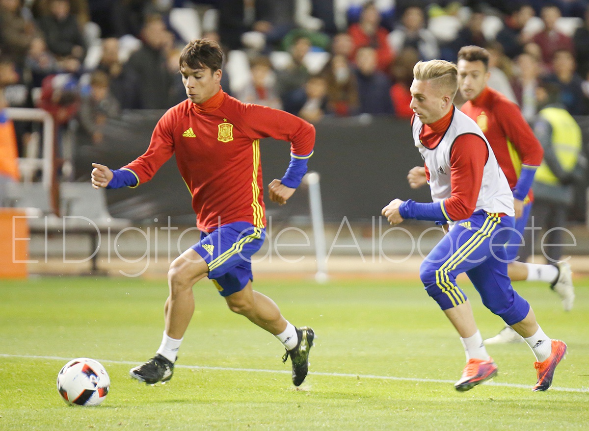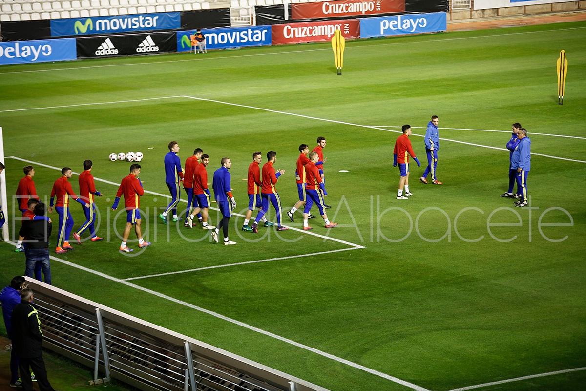 La Selección Española Sub 21 se ejercitó en el Carlos Belmonte veinticuatro horas antes del importantísimo partido contra Austria de este martes.