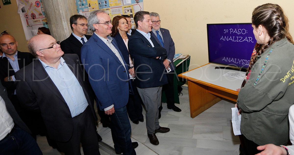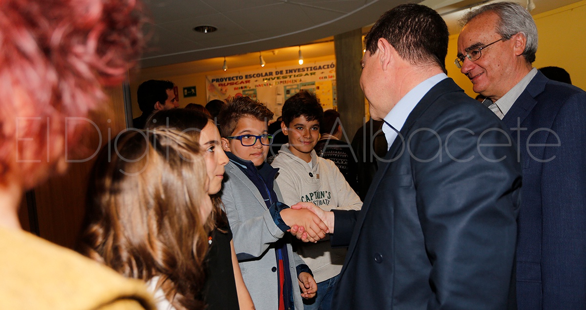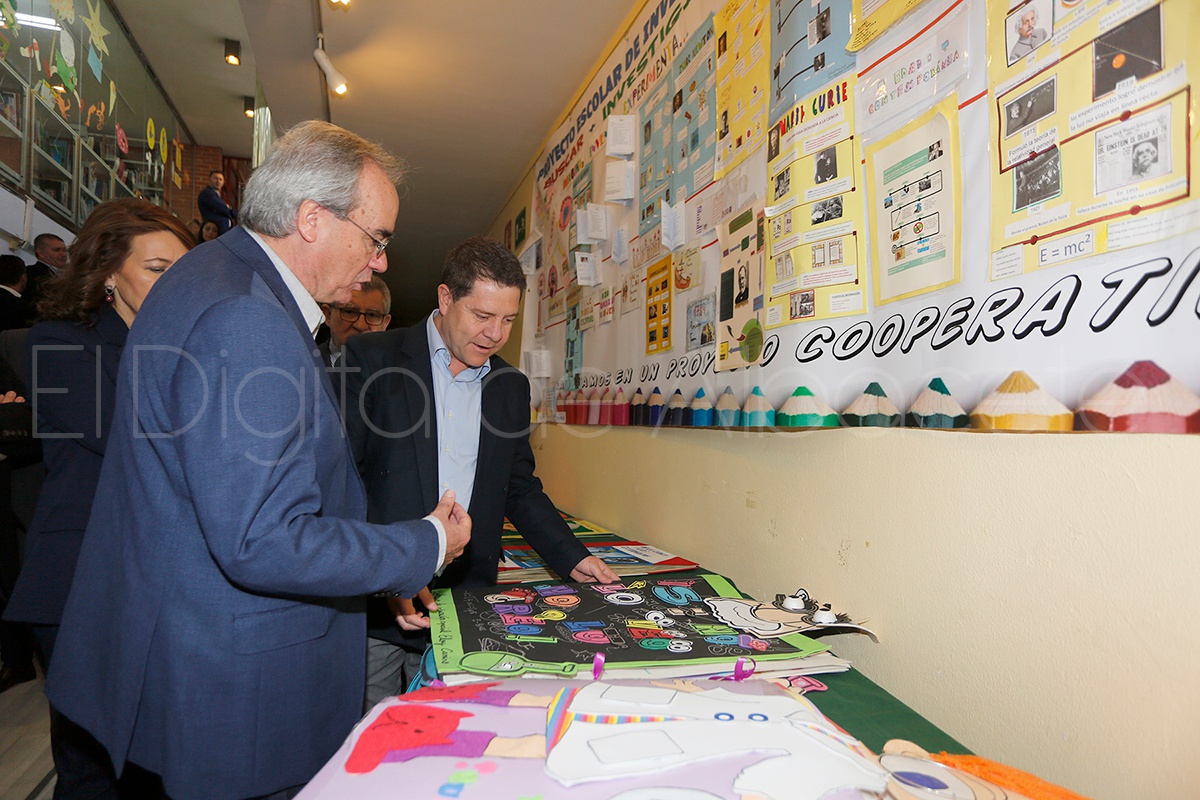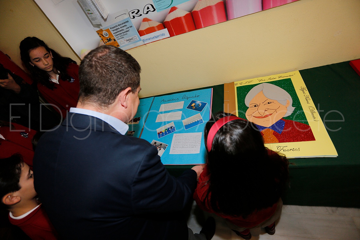 De este modo, representantes del CEIP San Fulgencio han comentado y mostrado a García-Page un video en inglés desarrollado para tal fin; escolares del CEIP La Paz un montaje fotográfico realizado por el centro; alumnos y alumnas del CEIP Cristóbal Valera un libro que han confeccionado sobre Gloria Fuertes; y alumnado de la Academia Cedes un conjunto de fotos de experimentos que han realizado a lo largo del año.