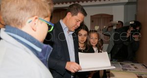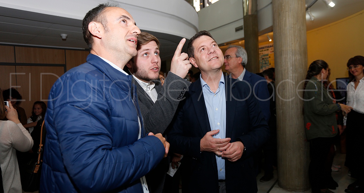 Durante su vista a la exposición ‘Libros Gigantes y Grandes Lecturas’, el presidente de Castilla-La Mancha ha conocido de primera mano los trabajos expuestos, y ha sido invitado a participar en una charla explicativa de las obras realizadas por distintos alumnas y alumnos de cuatro centros participantes.