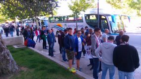 5 autobuses llenos de aficionados del Albacete Balompié han partido esta mañana hasta la localidad de Socuéllamos, donde el conjunto blanco puede proclamarse matemáticamente campeón del Grupo II de la Segunda División B y clasificarse así para la eliminatoria de campeones de la Fase de Ascenso a Segunda División.