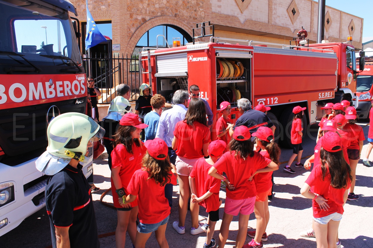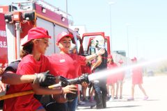 La visita del presidente, de la diputada provincial de Juventud y Deportes, María Victoria Leal, y del diputado responsable del SEPEI, Juan Gil, coincidió con una charla y una exhibición ofrecida precisamente por el cuerpo de bomberos provincial.
