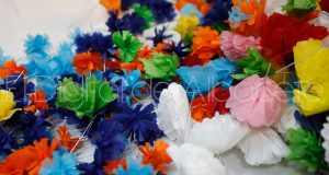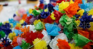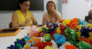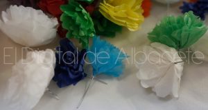 Cabe destacar la labor de 11 voluntarias —en total son 40 los voluntarios implicados en la iniciativa— que llevan desde hace dos meses confeccionando manual y artesanalmente alrededor de 8.000 florecillas de papel para rellenar el manto, muy similar al de nuestra patrona. Gracias a dichos ornamentos, las horas de cariño, esmero y dedicación que se están empleando en esta labor se verán recompensadas cuando, una vez llegada la Feria, el manto de la Virgen de los Llanos quede colmado de color pero, sobre todo, de bondad.