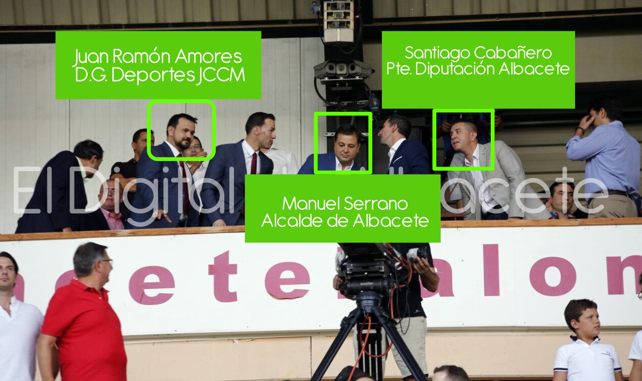 A esta distinguida ubicación están hoy invitados el alcalde de la ciudad, Manuel Serrano, el director general de deportes de la Junta de Castilla-La Mancha, Juan Ramón Amores y el presidente de la Diputación de Albacete, Santiago Cabañero, con quien el anterior propietario del Alba mantuvo una tensa relación en el tramo final de su mandato a cuenta de la reducción del importe del convenio que mantenía la Institución provincial con el club.