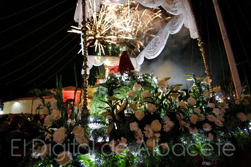 Antes, a las 23:05 horas, llegaba la Virgen de los Llanos hasta la explanada de la Puerta de Hierros para dar paso a un espectáculo pirotécnico de luces y sonido, que acompañado de la proyección de imágenes sobre el lienzo inigualable de la fachada de la Puerta de Hierros anunciaban el comienzo de los diez días más esperados del año por todo albaceteño.