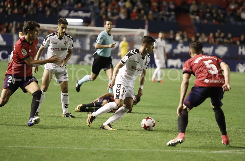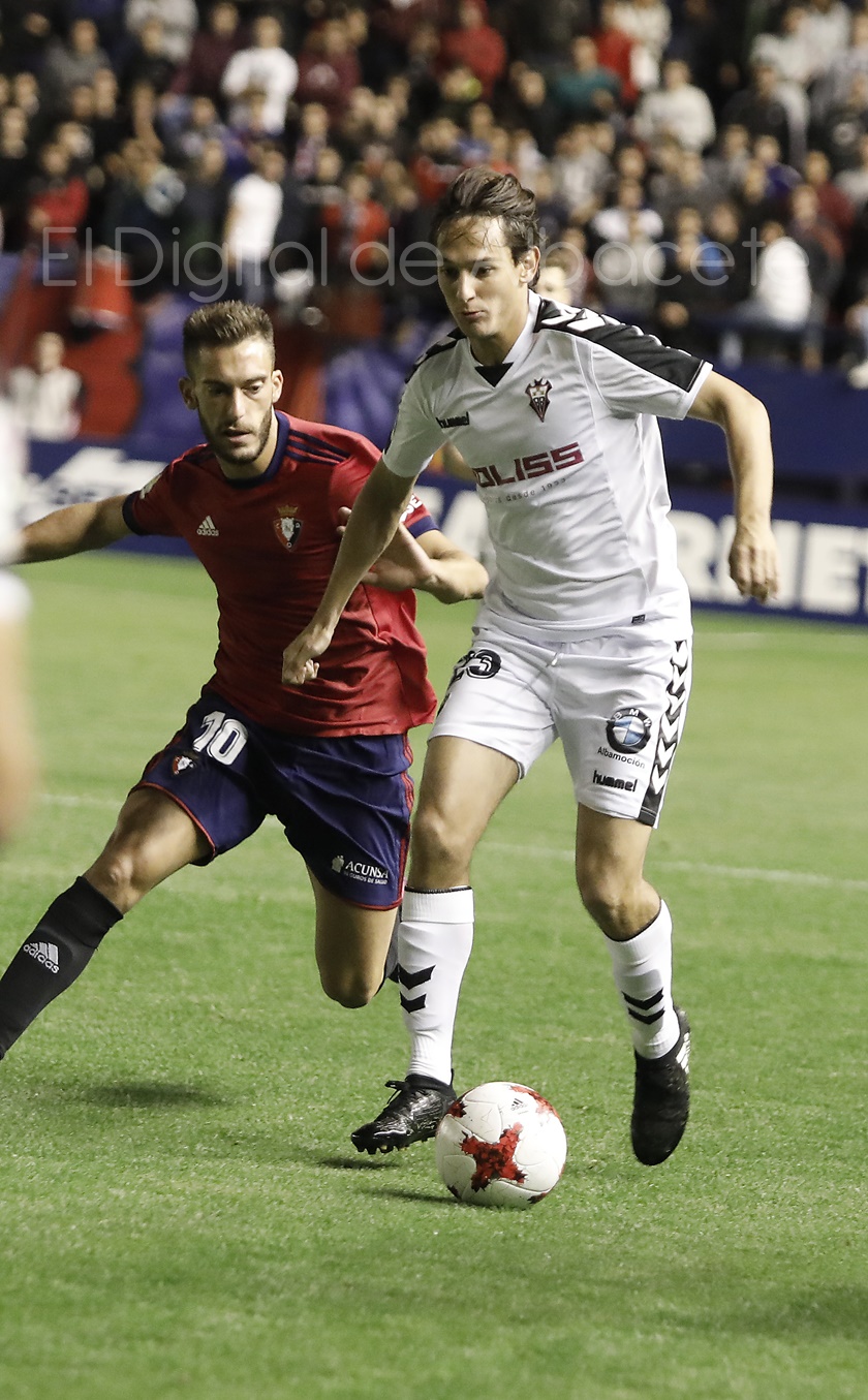 El Albacete Balompié se presentó en Pamplona con una alineación compuesta por once caras nuevas con respecto a la presentada el pasado lunes en Alcorcón en la jornada liguera, estando Danny Carvajal en portería; Nili Perdomo en el lateral derecho, Mariano Bíttolo en el izquierdo y Chus Herrero y Adri Gómez como pareja de centrales; César de la Hoz hizo de enganche; Bela y José Fran estuvieron en el ataque por banda, Quim Araujo y Dani Rodríguez fueron los inquilinos de la sala de máquinas del centro del campo y Héctor Hernández fue el hombre más adelantado del ya cuestionado José Manuel Aira.