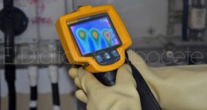 Y es que, la Feria de Albacete, que hasta ahora transcurre con normalidad, es un evento de gran envergadura por el que pasan millones de personas, por lo que todo tiene que estar bajo control. Así, además de las tareas citadas, Huntec realiza revisiones constantes de los cuadros de luz como medida de prevención cada día y también antes de Feria. En este sentido, acompañamos al operario Miguel Ángel Segovia, en una de sus revisiones donde nos muestra una de las herramientas con las que llevar a cabo esta tarea y que consiste en detectar puntos calientes y evitar sobrecargas.